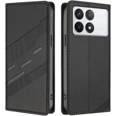 • Phonesta Embossed Lines Book Wallet Case hoesje voor Xiaomi 14T - Zwart