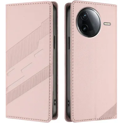 TelefoonhoesjesXiaomi hoesjesXiaomi Poco F7 Ultra hoesjesPhonesta Embossed Lines Book Wallet Case hoesje voor Xiaomi Poco F7 Pro/F7 Ultra - Roze