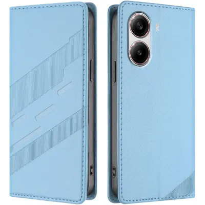• Phonesta Embossed Lines Book Wallet Case hoesje voor Xiaomi Poco X7 Pro - Lichtblauw