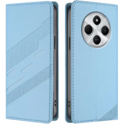 • Phonesta Embossed Lines Book Wallet Case hoesje voor Xiaomi Redmi 14C / Xiaomi Poco C75 - Lichtblauw