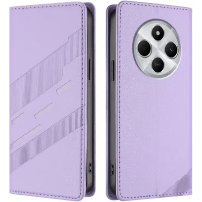 • Phonesta Embossed Lines Book Wallet Case hoesje voor Xiaomi Redmi 14C / Xiaomi Poco C75 - Paars