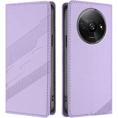 Phonesta Embossed Lines Book Wallet Case hoesje voor Xiaomi Redmi A3 - Paars