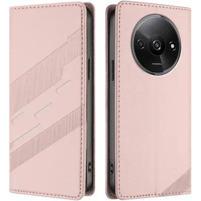 Phonesta Embossed Lines Book Wallet Case hoesje voor Xiaomi Redmi A3 - Roze