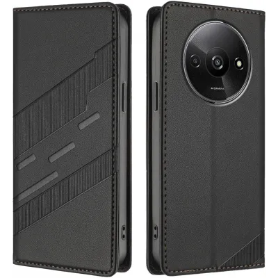 Phonesta Embossed Lines Book Wallet Case hoesje voor Xiaomi Redmi A3 - Zwart