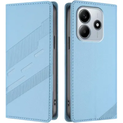 Phonesta Embossed Lines Book Wallet Case hoesje voor Xiaomi Redmi Note 14 5G - Lichtblauw