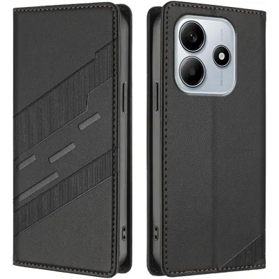 • Phonesta Embossed Lines Book Wallet Case hoesje voor Xiaomi Redmi Note 14 5G - Zwart