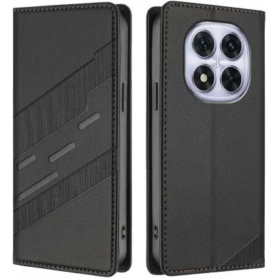 • Phonesta Embossed Lines Book Wallet Case hoesje voor Xiaomi Redmi Note 14 Pro 4G - Zwart