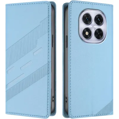 • Phonesta Embossed Lines Book Wallet Case hoesje voor Xiaomi Redmi Note 14 Pro 5G/14 Pro Plus / Xiaomi Poco X7 - Lichtblauw