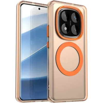 TelefoonhoesjesXiaomi hoesjesXiaomi Redmi Note 14 Pro 5G hoesjesPhonesta HardFrost Back Cover hoesje met MagSafe voor Xiaomi Redmi Note 14 Pro 5G / Xiaomi Poco X7 - Mat Oranje