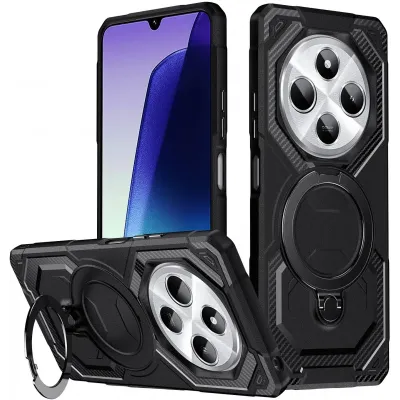 TelefoonhoesjesXiaomi hoesjesXiaomi Poco C75 hoesjesPhonesta IronLock Back Cover hoesje met ring en MagSafe voor Xiaomi Redmi 14C / Xiaomi Poco C75 - Zwart