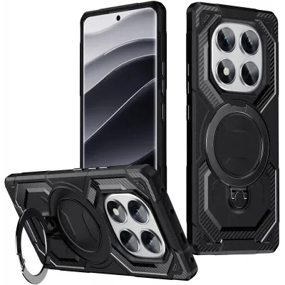 • Phonesta IronLock Back Cover hoesje met ring en MagSafe voor Xiaomi Redmi Note 14 Pro 4G/5G/14 Pro Plus / Xiaomi Poco X7 - Zwart