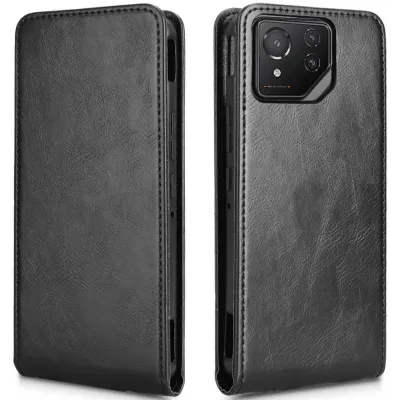 Phonesta Leather Vertical Flip Wallet Case hoesje voor Asus ROG Phone 8/8 Pro - Zwart