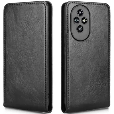 • Phonesta Leather Vertical Flip Wallet Case hoesje voor HONOR 200 - Zwart