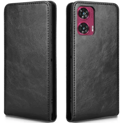 • Phonesta Leather Vertical Flip Wallet Case hoesje voor Motorola Edge 50 Fusion - Zwart
