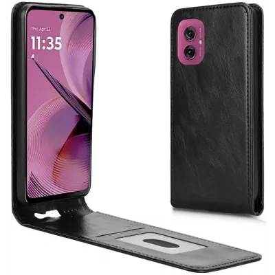Phonesta Leather Vertical Flip Wallet Case hoesje voor Motorola Moto G55 - Zwart