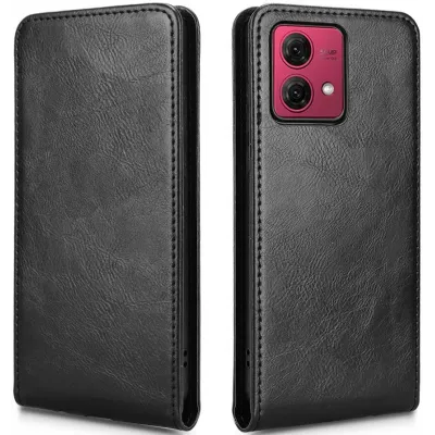 • Phonesta Leather Vertical Flip Wallet Case hoesje voor Motorola Moto G84 - Zwart