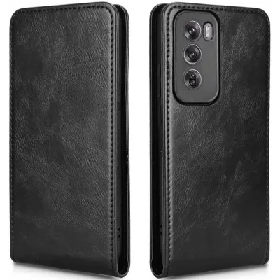 Phonesta Leather Vertical Flip Wallet Case hoesje voor Oppo Reno12 Pro - Zwart