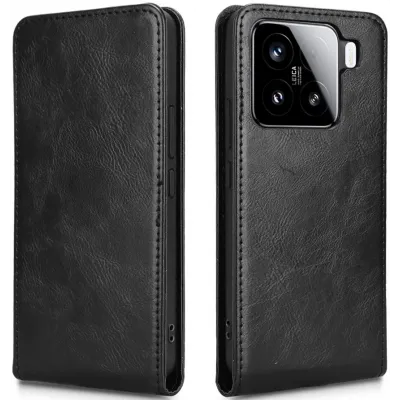 Phonesta Leather Vertical Flip Wallet Case hoesje voor Xiaomi 15 - Zwart