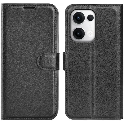 • Phonesta Litchi Skin Book Wallet Case hoesje voor Oppo Reno13 Pro - Zwart