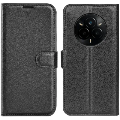 Phonesta Litchi Skin Book Wallet Case hoesje voor Realme 14 Pro - Zwart