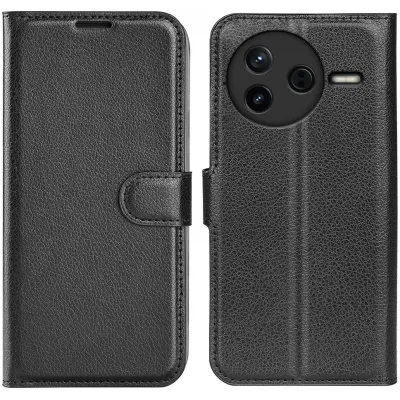 • Phonesta Litchi Skin Book Wallet Case hoesje voor Xiaomi Poco F7 Pro - Zwart