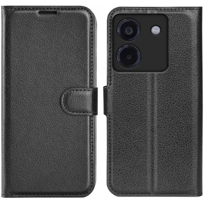 • Phonesta Litchi Skin Book Wallet Case hoesje voor Xiaomi Poco M7 Pro - Zwart