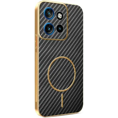 Ontdek het Phonesta Luxury Carbon Fiber Back Cover hoesje met MagSafe, speciaal ontworpen voor jouw Motorola Edge 60 Neo/Edge 50 Neo / ThinkPhone 25. Dit hoesje is gemaakt van flexibel TPU, wat zorgt voor uitstekende schokabsorptie en een perfecte pasvorm. Je kunt erop vertrouwen dat je telefoon goed beschermd is tegen vallen en stoten. De kleur zwart geeft je telefoon een stijlvolle uitstraling, terwijl de premium gouden elektroplated afwerking extra duurzaamheid biedt. Dit maakt het hoesje niet alleen mooi, maar ook sterk genoeg om dagelijks gebruik te weerstaan.