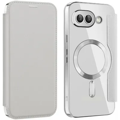 • Phonesta Luxury Crystal Book Wallet Case hoesje met MagSafe voor Google Pixel 9a - Zilver