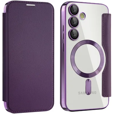 • Phonesta Luxury Crystal Book Wallet Case hoesje met MagSafe voor Samsung Galaxy S24 FE - Donkerpaars