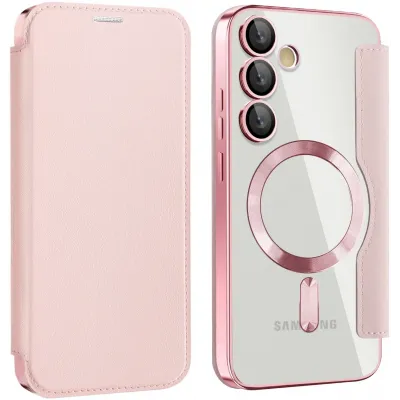 • Phonesta Luxury Crystal Book Wallet Case hoesje met MagSafe voor Samsung Galaxy S24 FE - Roze