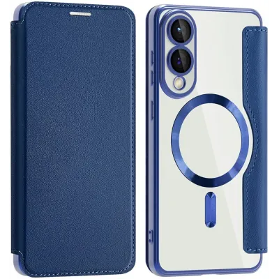 • Phonesta Luxury Crystal Book Wallet Case hoesje met MagSafe voor Samsung Galaxy S25 Edge - Donkerblauw