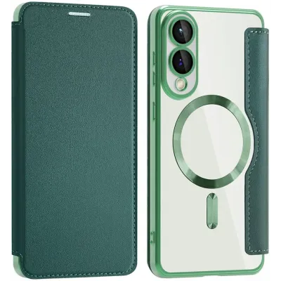 • Phonesta Luxury Crystal Book Wallet Case hoesje met MagSafe voor Samsung Galaxy S25 Edge - Donkergroen