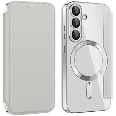 • Phonesta Luxury Crystal Book Wallet Case hoesje met MagSafe voor Samsung Galaxy S25/S24 - Zilver
