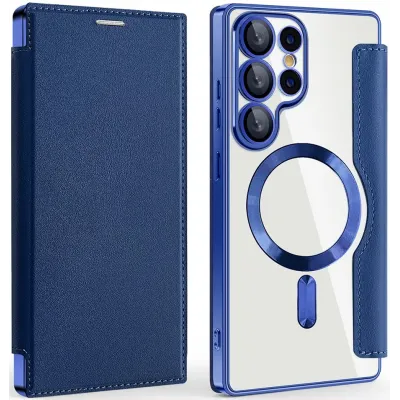 • Phonesta Luxury Crystal Book Wallet Case hoesje met MagSafe voor Samsung Galaxy S25 Ultra - Donkerblauw