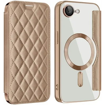 • Phonesta Luxury Crystal Puffed Book Wallet Case hoesje met MagSafe voor Apple iPhone 17e/16e - Desert Goud