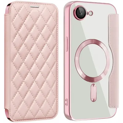 • Phonesta Luxury Crystal Puffed Book Wallet Case hoesje met MagSafe voor Apple iPhone 17e/16e - Roze