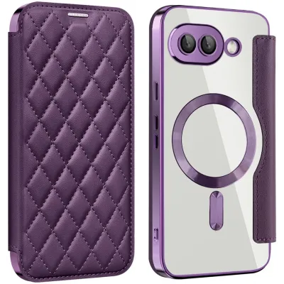 TelefoonhoesjesGoogle hoesjesGoogle Pixel 9a hoesjesPhonesta Luxury Crystal Puffed Book Wallet Case hoesje met MagSafe voor Google Pixel 9a - Donkerpaars