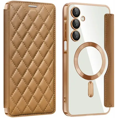 • Phonesta Luxury Crystal Puffed Book Wallet Case hoesje met MagSafe voor Samsung Galaxy A16 - Bruin