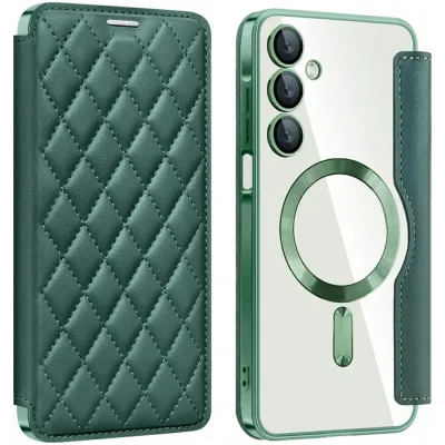 • Phonesta Luxury Crystal Puffed Book Wallet Case hoesje met MagSafe voor Samsung Galaxy A16 - Donkergroen