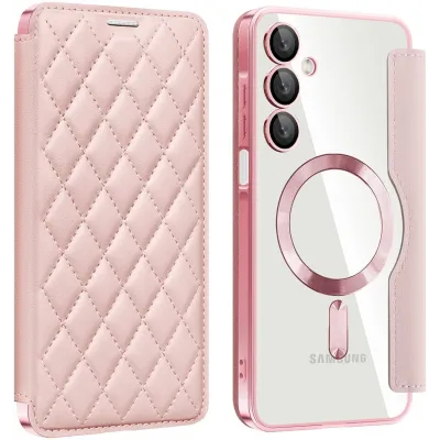 • Phonesta Luxury Crystal Puffed Book Wallet Case hoesje met MagSafe voor Samsung Galaxy A16 - Roze