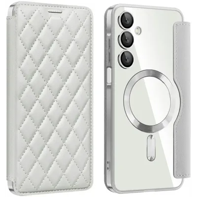 • Phonesta Luxury Crystal Puffed Book Wallet Case hoesje met MagSafe voor Samsung Galaxy A16 - Zilver