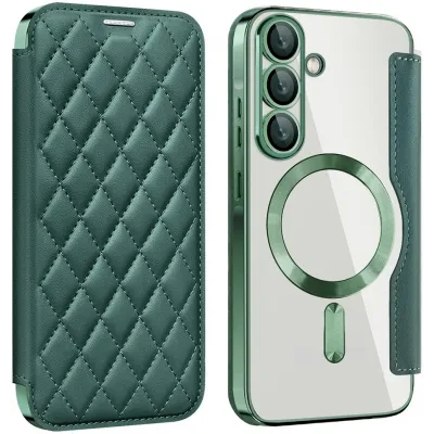 • Phonesta Luxury Crystal Puffed Book Wallet Case hoesje met MagSafe voor Samsung Galaxy A36/A56 - Donkergroen