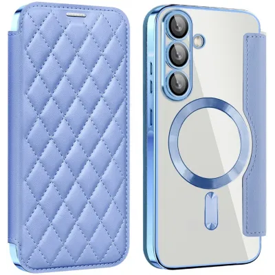 • Phonesta Luxury Crystal Puffed Book Wallet Case hoesje met MagSafe voor Samsung Galaxy A36/A56 - Lichtblauw