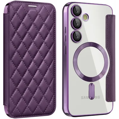 • Phonesta Luxury Crystal Puffed Book Wallet Case hoesje met MagSafe voor Samsung Galaxy S24 FE - Donkerpaars
