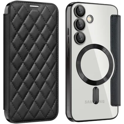 • Phonesta Luxury Crystal Puffed Book Wallet Case hoesje met MagSafe voor Samsung Galaxy S24 FE - Zwart