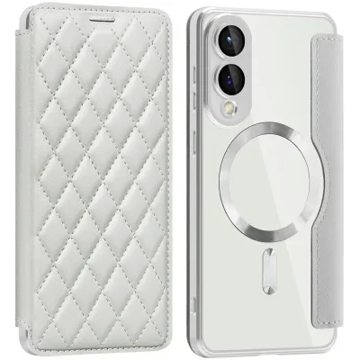 • Phonesta Luxury Crystal Puffed Book Wallet Case hoesje met MagSafe voor Samsung Galaxy S25 Edge - Zilver