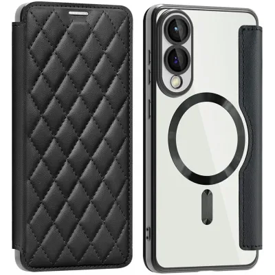 • Phonesta Luxury Crystal Puffed Book Wallet Case hoesje met MagSafe voor Samsung Galaxy S25 Edge - Zwart