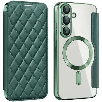 • Phonesta Luxury Crystal Puffed Book Wallet Case hoesje met MagSafe voor Samsung Galaxy S25 Plus/S24 Plus - Donkergroen