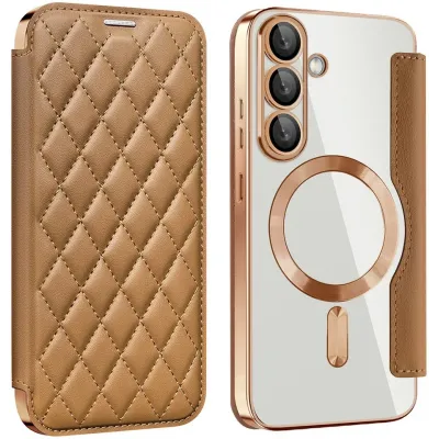 • Phonesta Luxury Crystal Puffed Book Wallet Case hoesje met MagSafe voor Samsung Galaxy S25/S24 - Bruin