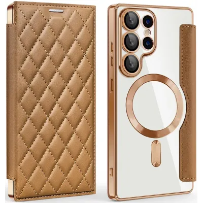 • Phonesta Luxury Crystal Puffed Book Wallet Case hoesje met MagSafe voor Samsung Galaxy S25 Ultra - Bruin